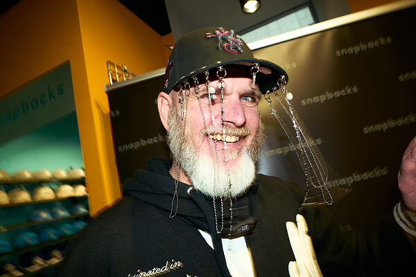 It was right here that we once sold his iconic "horny" snapbacks with sewn-on horns.