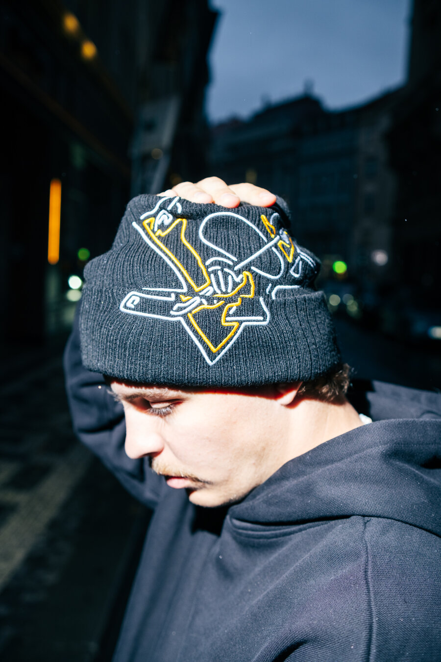 Black Men's Mitchell & Ness Kulich with the motif of the Pittsburgh Penguins ice Hockey team.