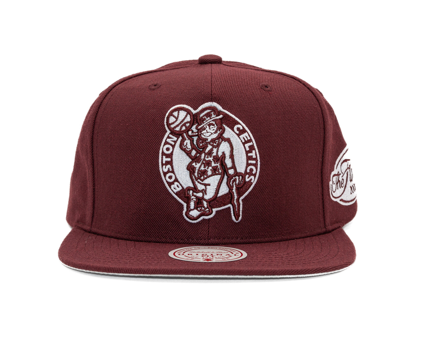 Red Men's Mitchell & Ness kšiltovka with the motif of the Boston Celtics basketball team.