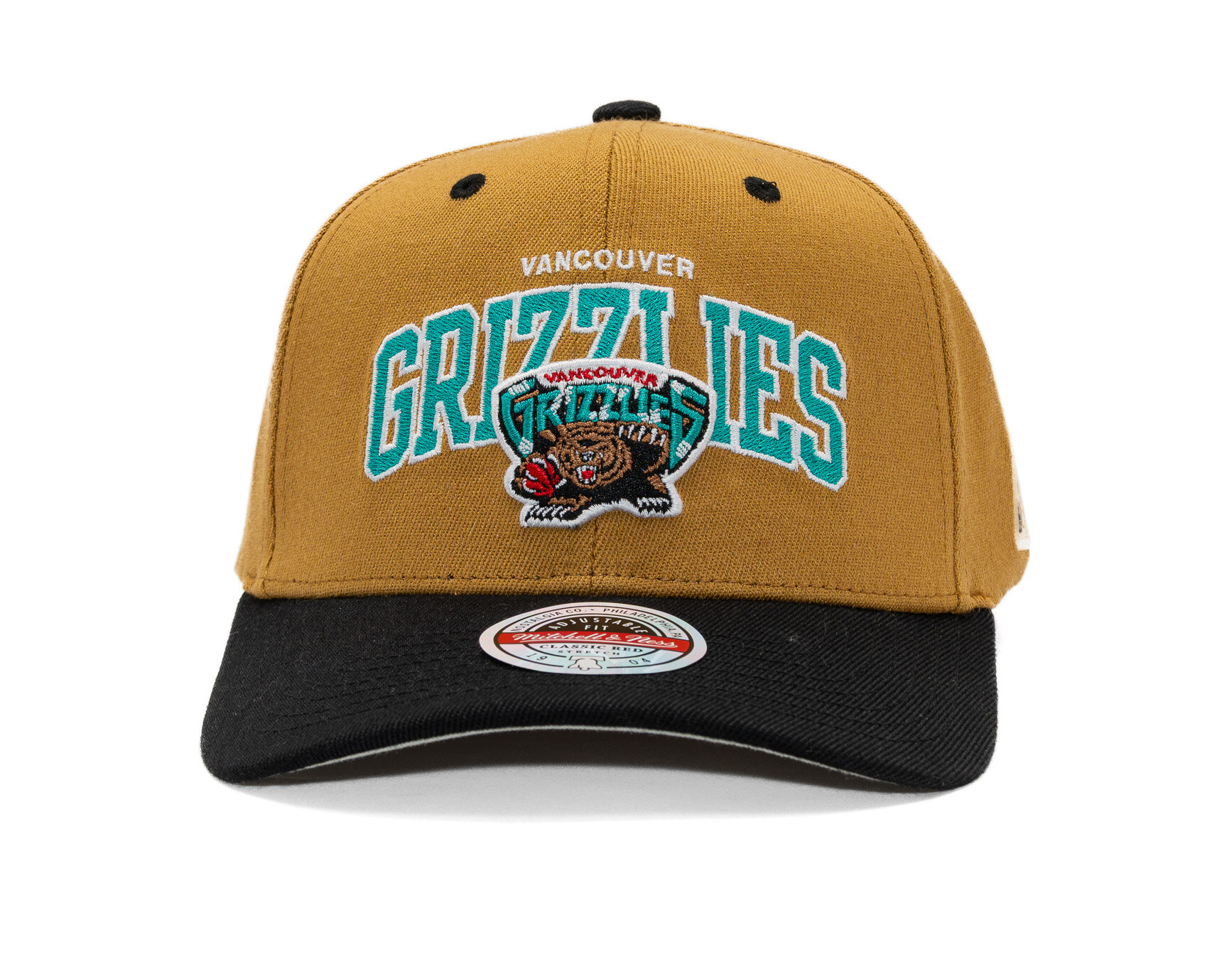 Black unisex Mitchell & Ness Cap with the motif of the Vancouver Grizzlies basketball team.