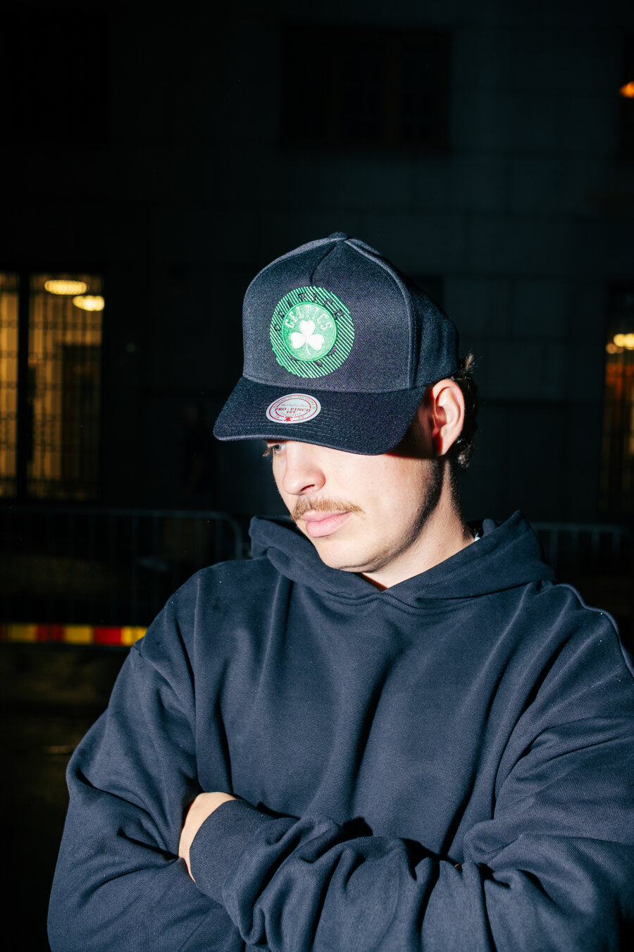 Black Men's Mitchell & Ness Cap with the motif of the Boston Celtics basketball team.