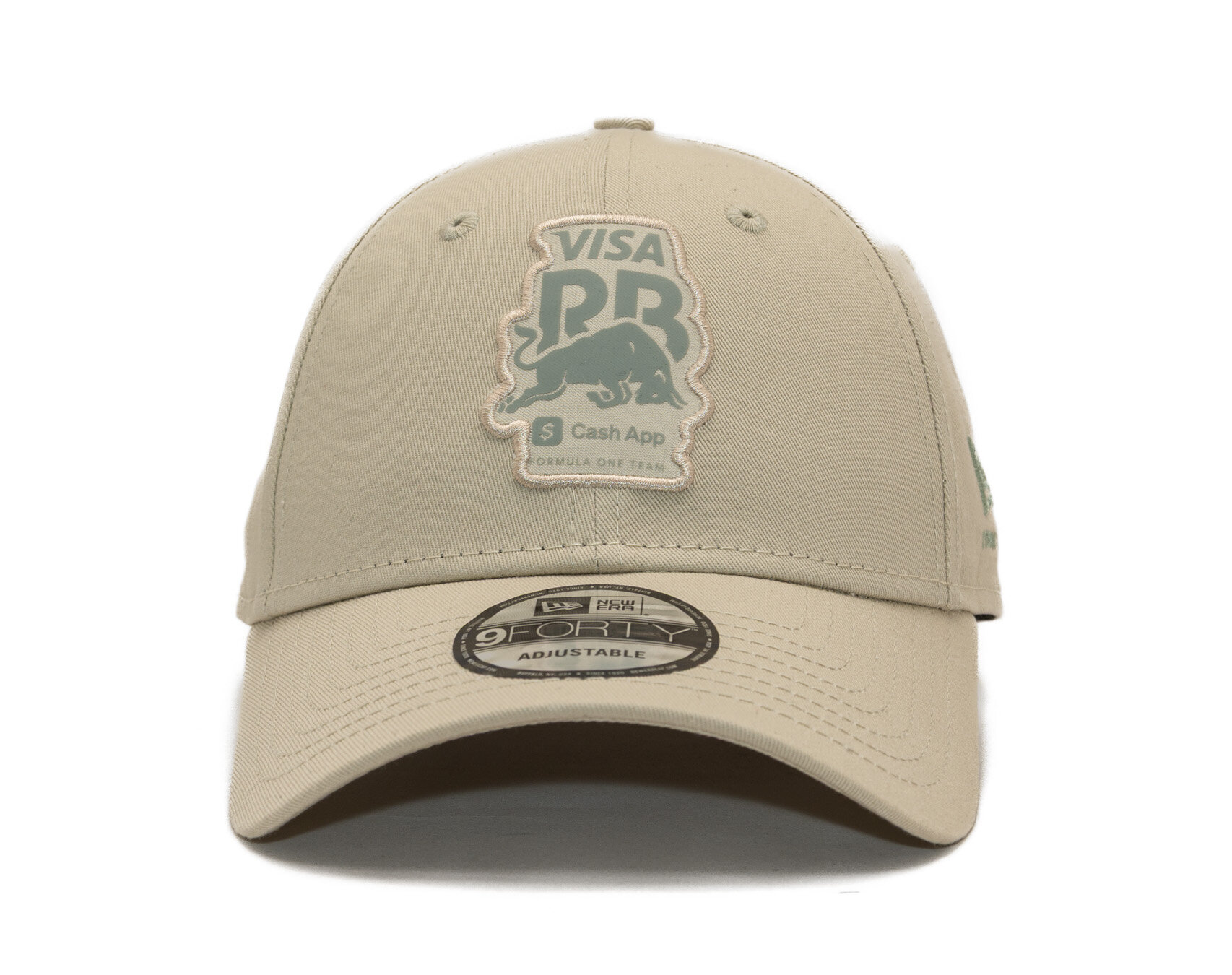 Béžová Men's New Era Cap with the motif of the Visa Cash App Racing Bulls motorsport team.