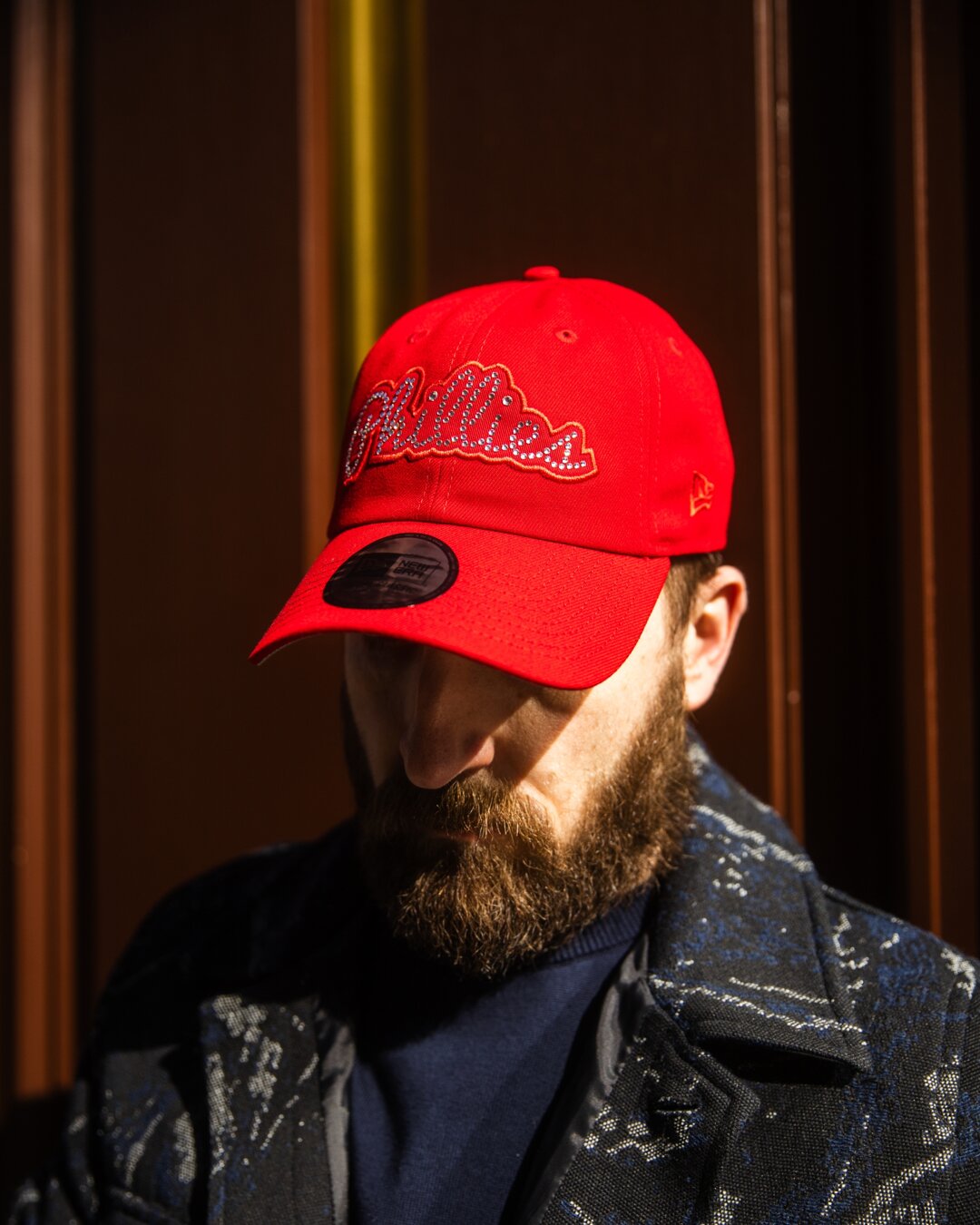 Red Men's New Era Cap with the motif of the Philadelphia Phillies baseball team.