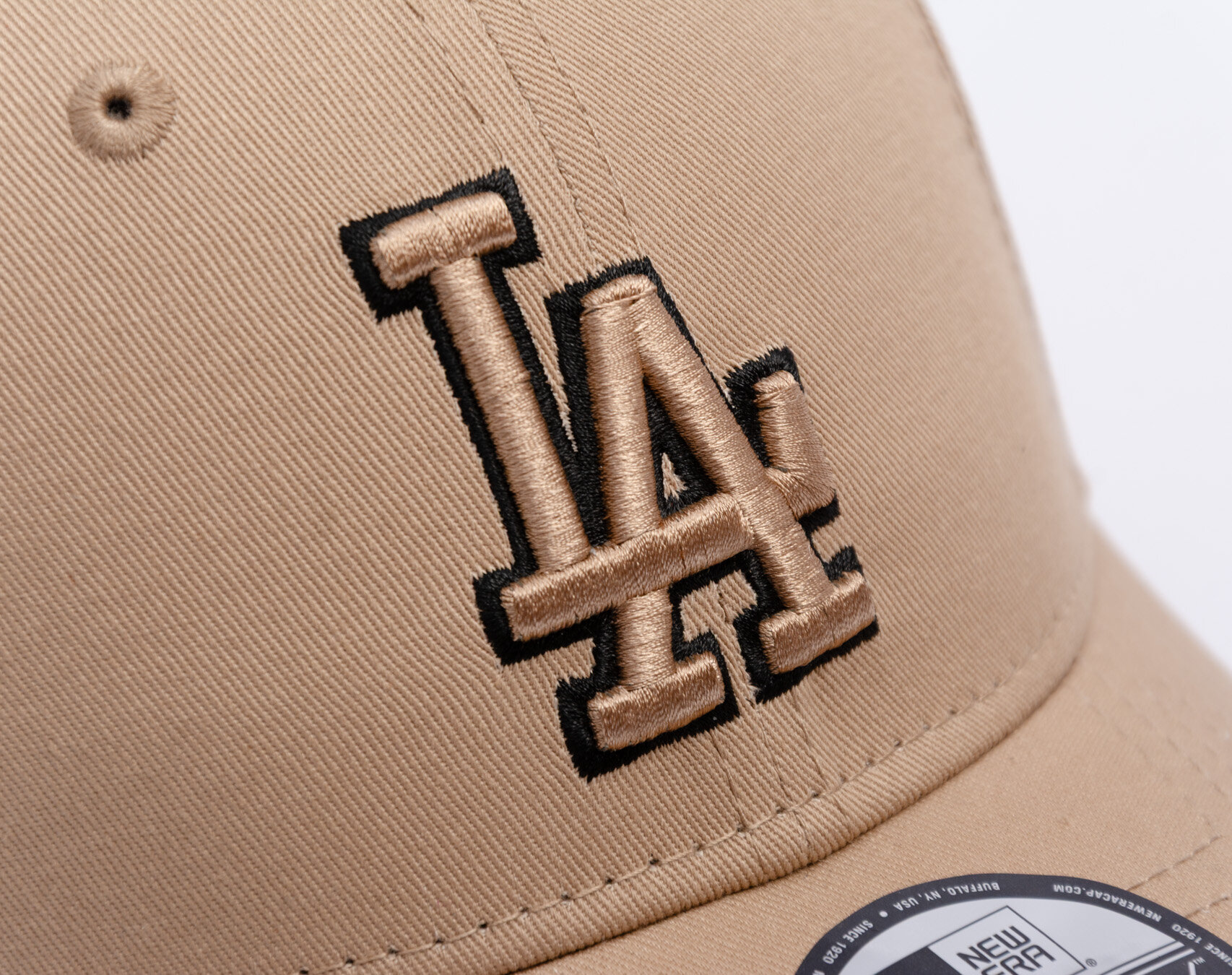 Béžová Men's New Era Cap with the motif of the Los Angeles Dodgers team.