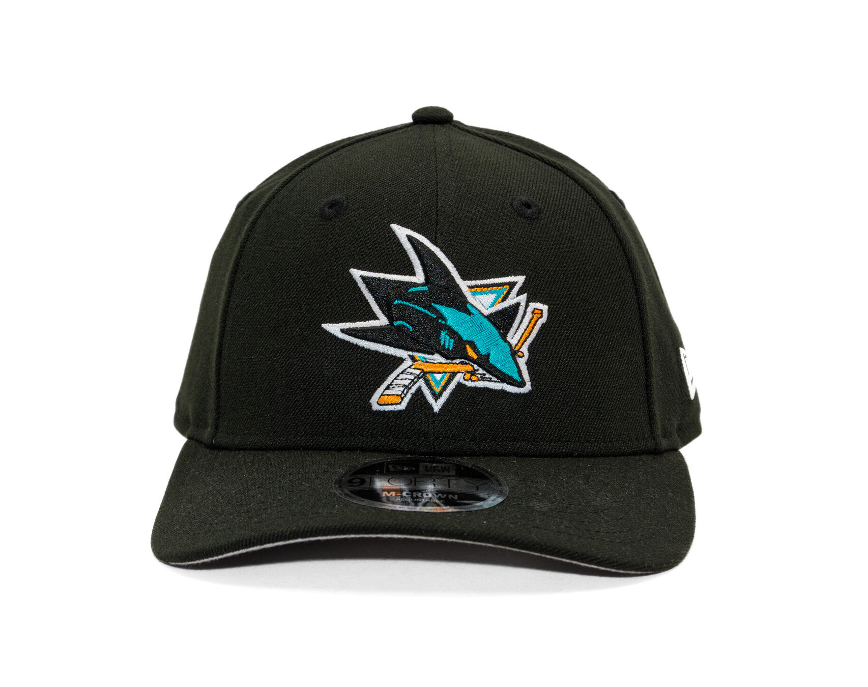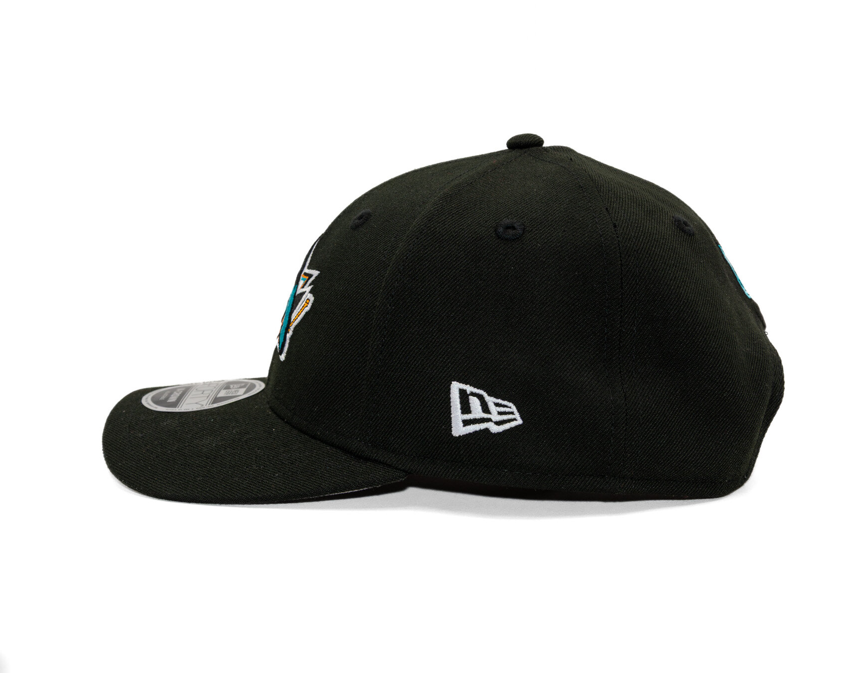Black Men's New Era basecap with the motif of the San Jose Sharks ice Hockey team.