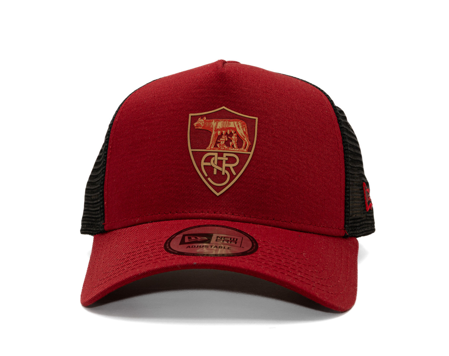 Black Men's New Era Cap with the motif of the AS Roma soccer team.