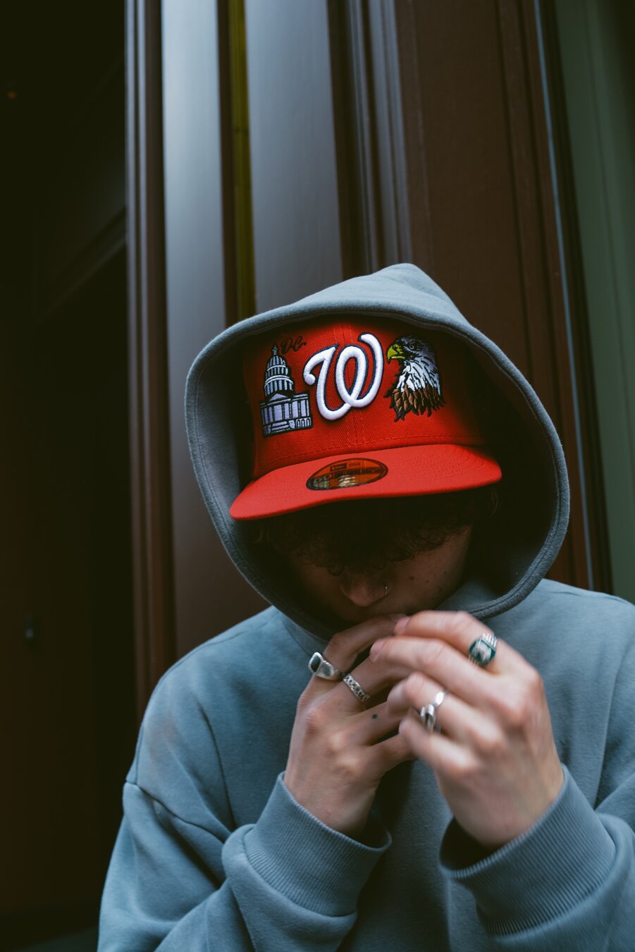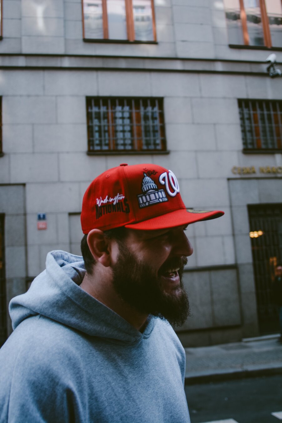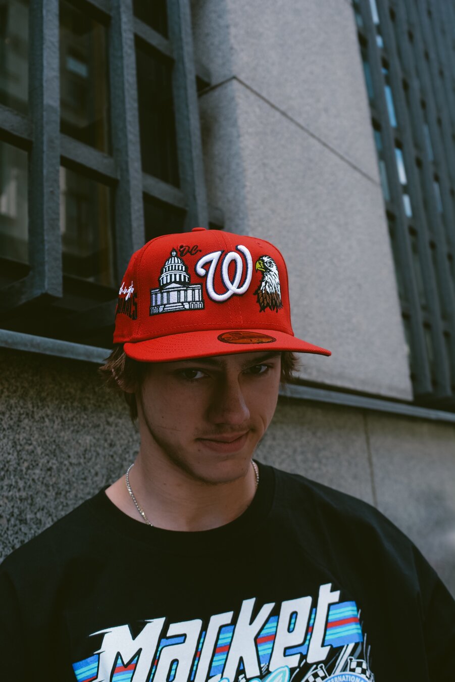 Red unisex Adam Wave Cap with the motif of the Washington Nationals baseball team.