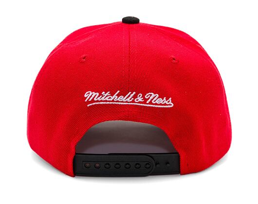 Black Men's Mitchell & Ness Cap with the motif of the Chicago Bulls basketball team.
