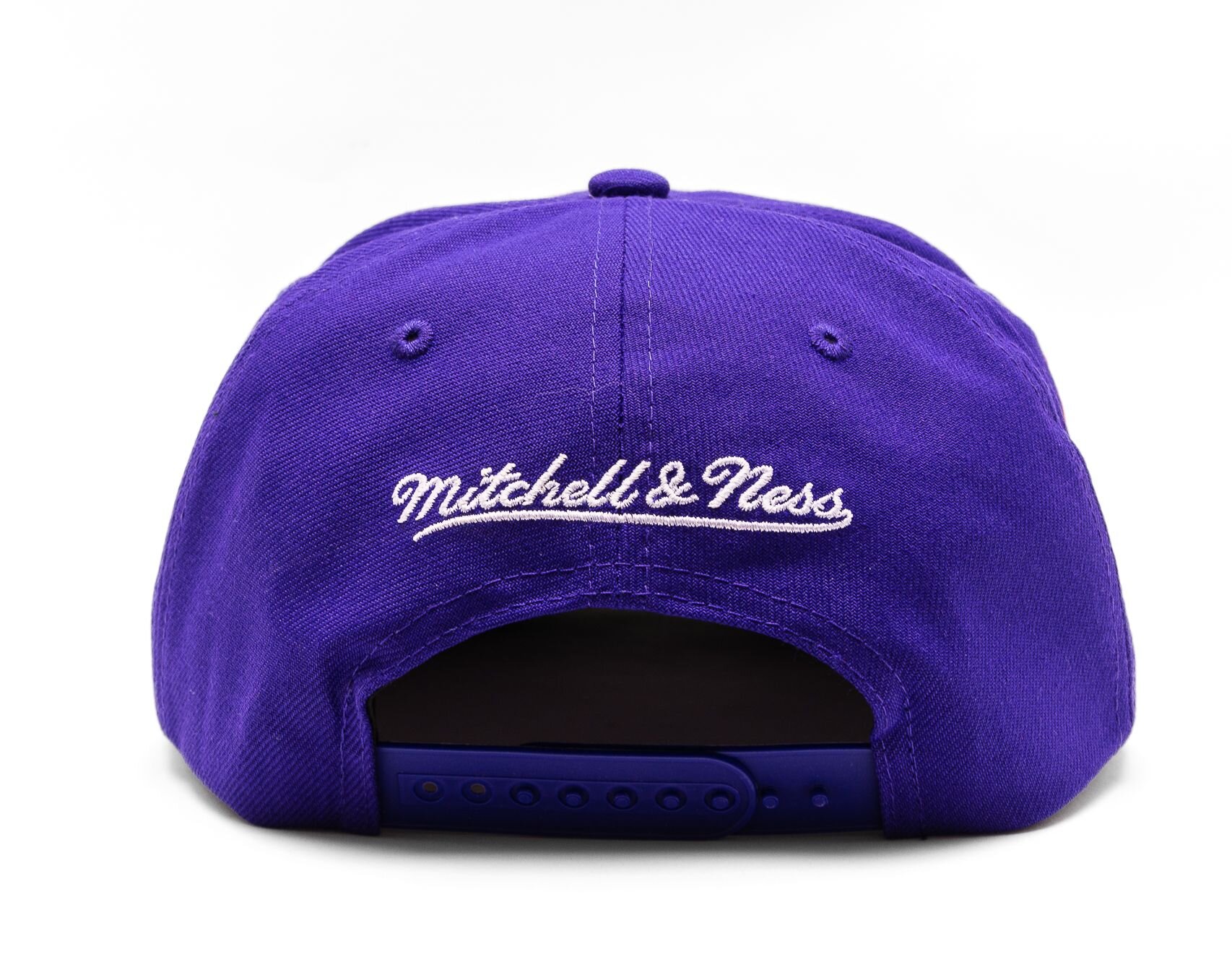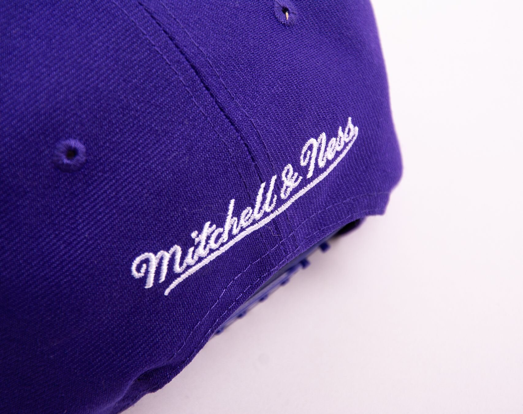 Purple unisex Mitchell & Ness basecap with the motif of the Los Angeles Lakers basketball team.