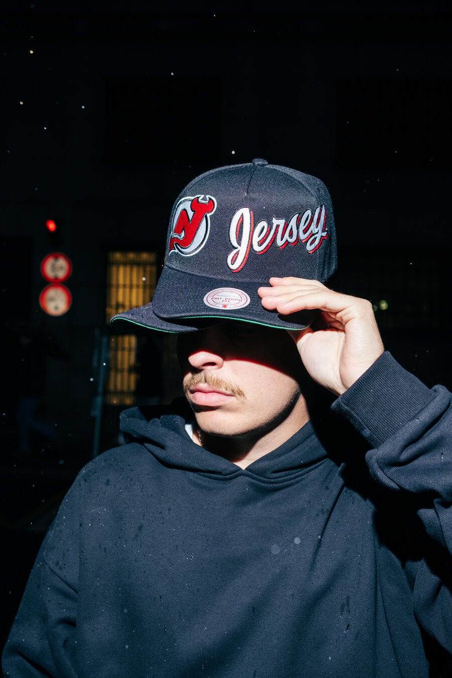 Black Men's Mitchell & Ness Cap with the motif of the New Jersey Devils ice Hockey team.