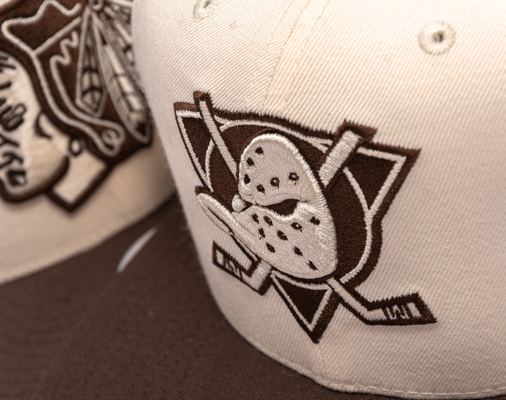 Brown Men's Mitchell & Ness kšiltovka with the motif of the Anaheim Ducks team.