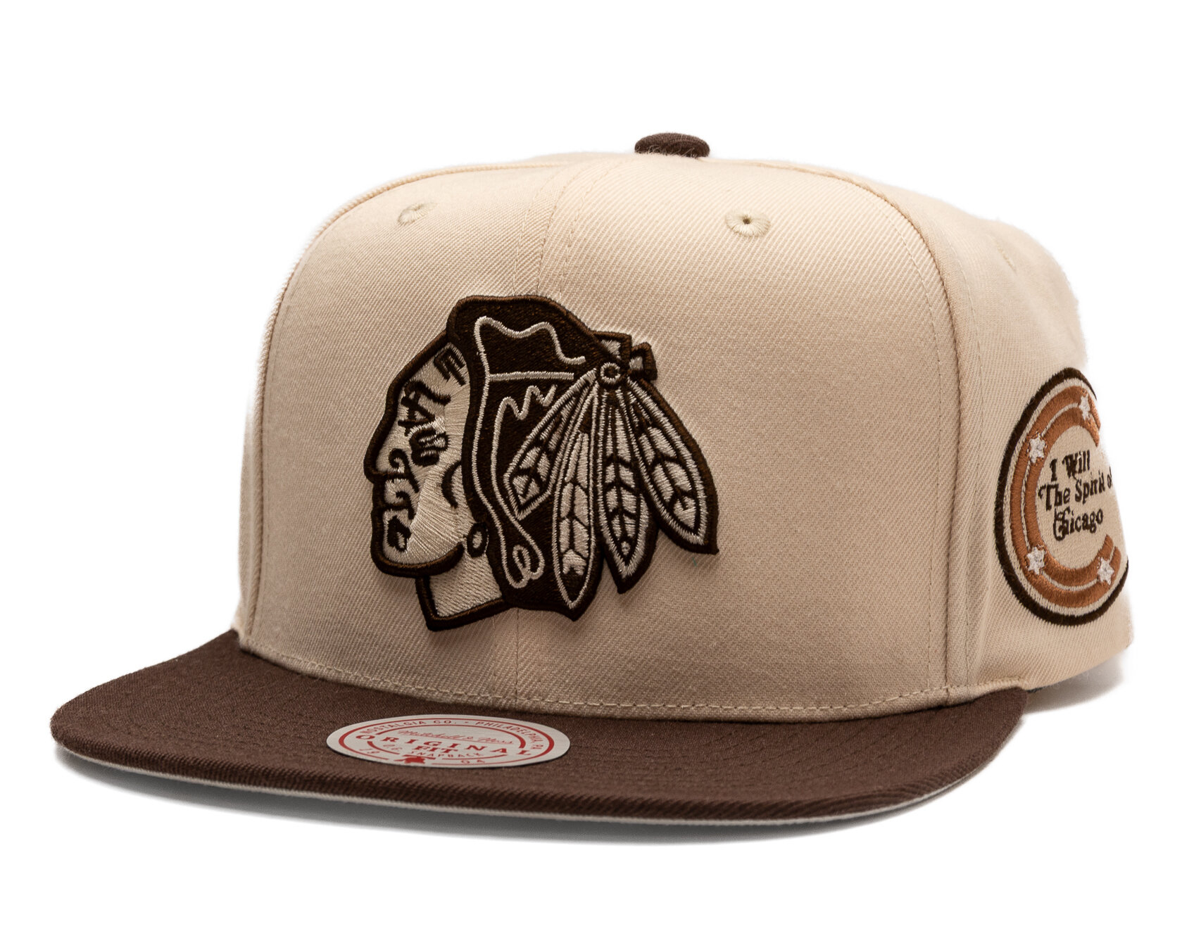 Brown Men's Mitchell & Ness kšiltovka with the motif of the Chicago Blackhawks team.