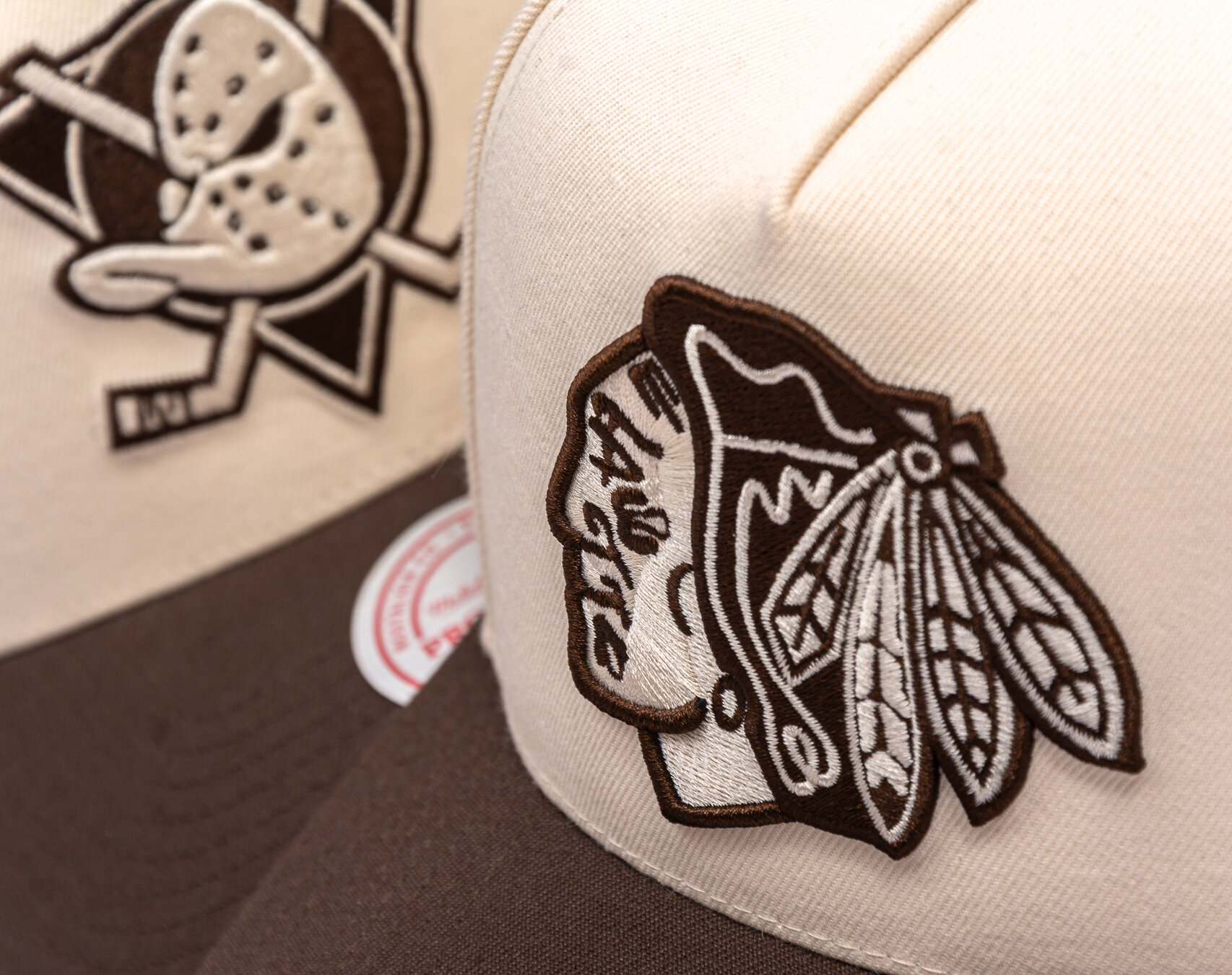 Brown Men's Mitchell & Ness kšiltovka with the motif of the Chicago Blackhawks team.