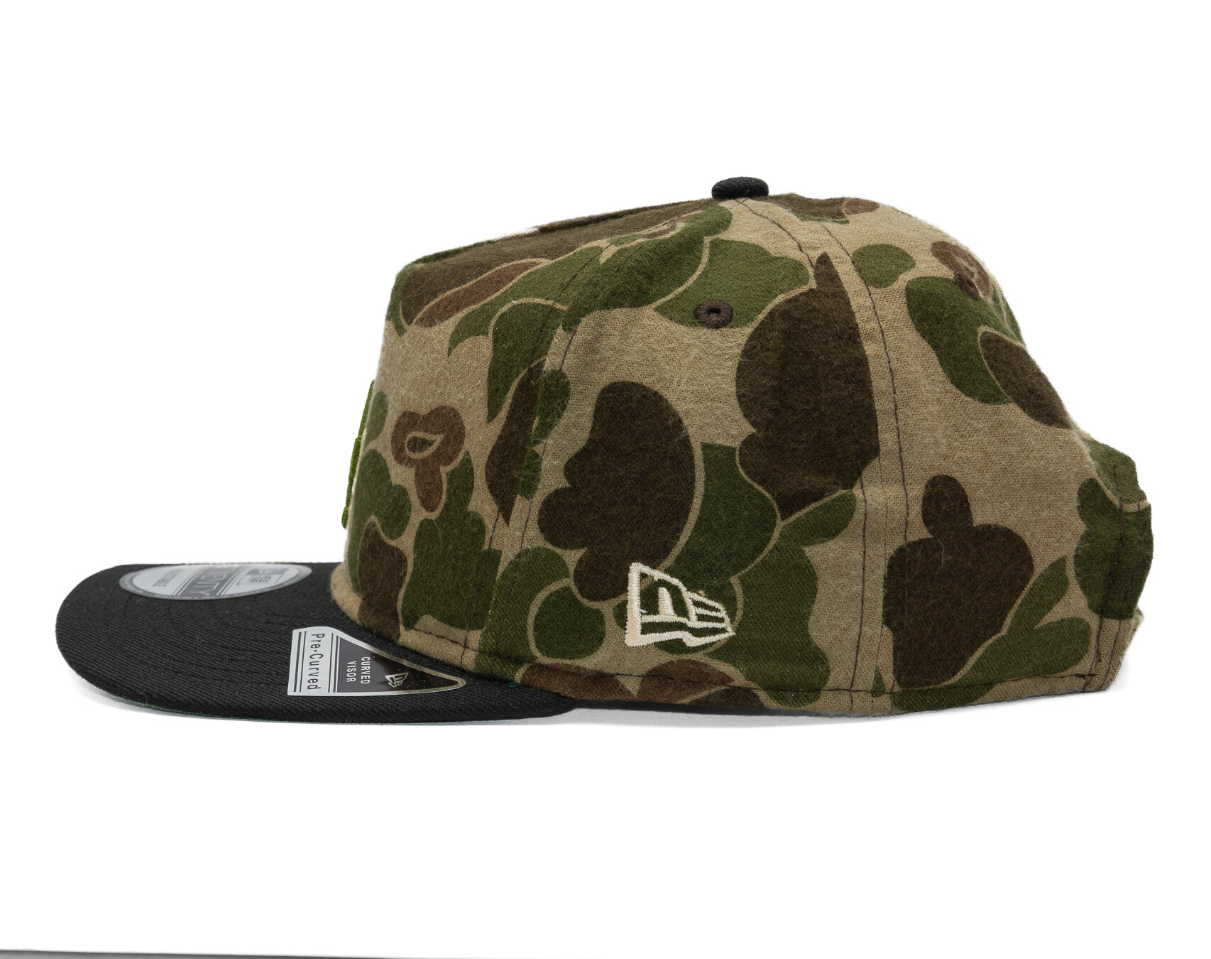 Neokoukané Duck Camo maskáčové provedení, prémiové látky od Three Looms z Japonska, 7 týmů MLB na čele, a jako vždy ikonickou vlajkou New Era na levé straně!