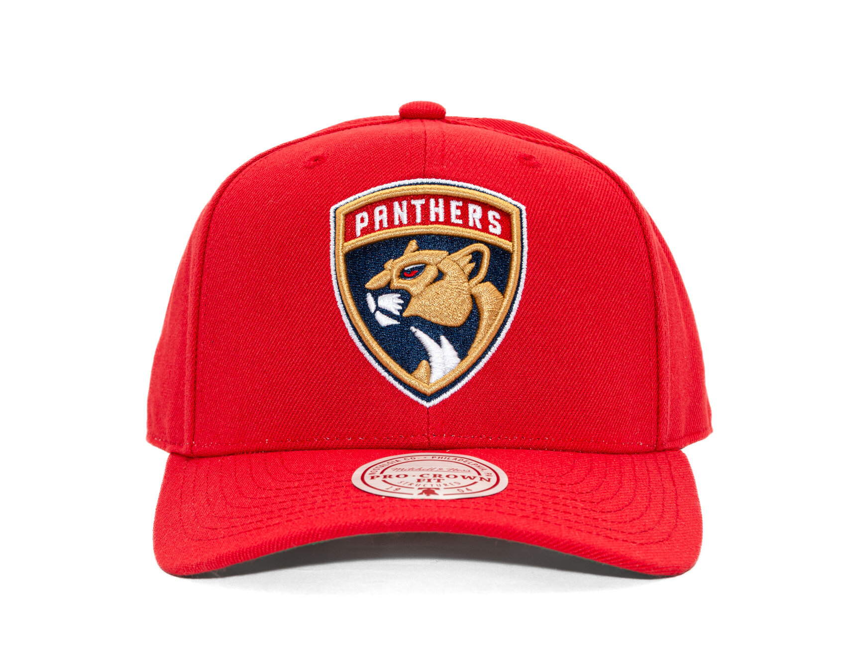 Red Men's Mitchell & Ness Cap with the motif of the Florida Panthers ice Hockey team.