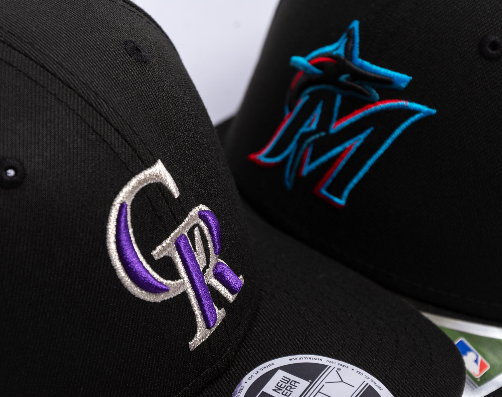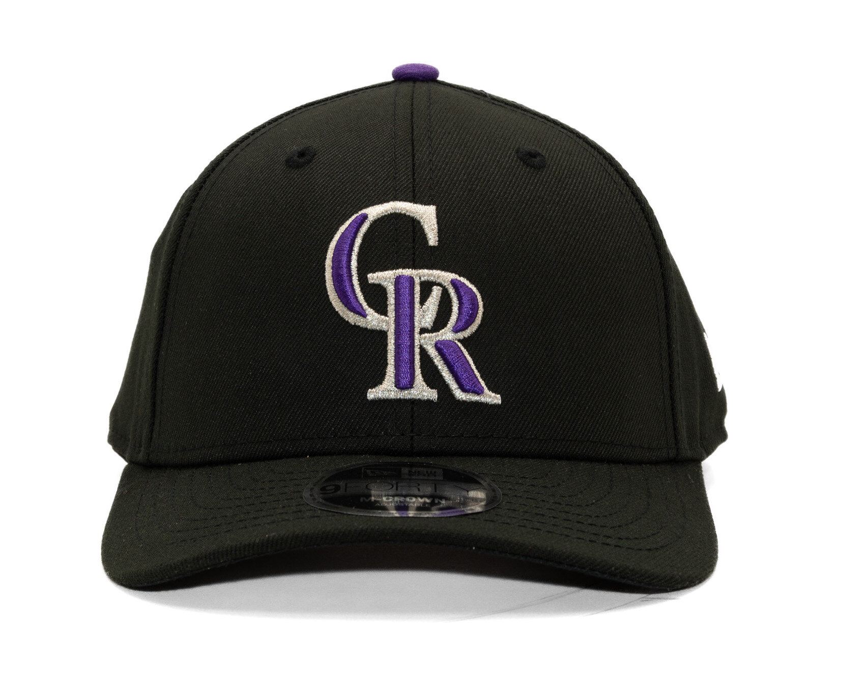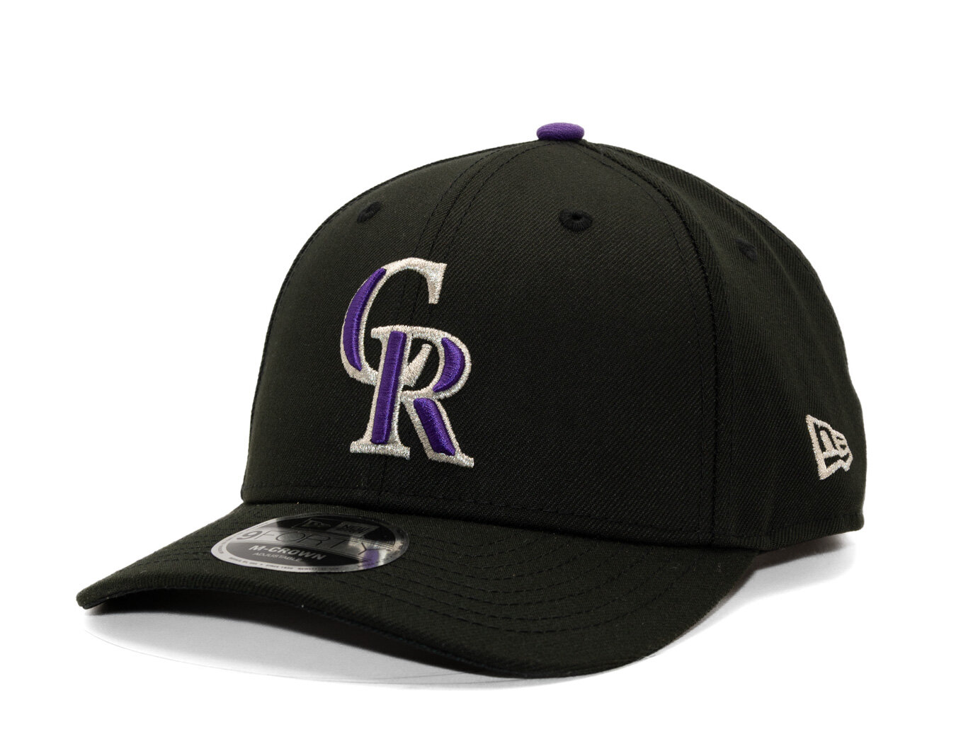 Black Men's New Era Cap with the motif of the Colorado Rockies baseball team.