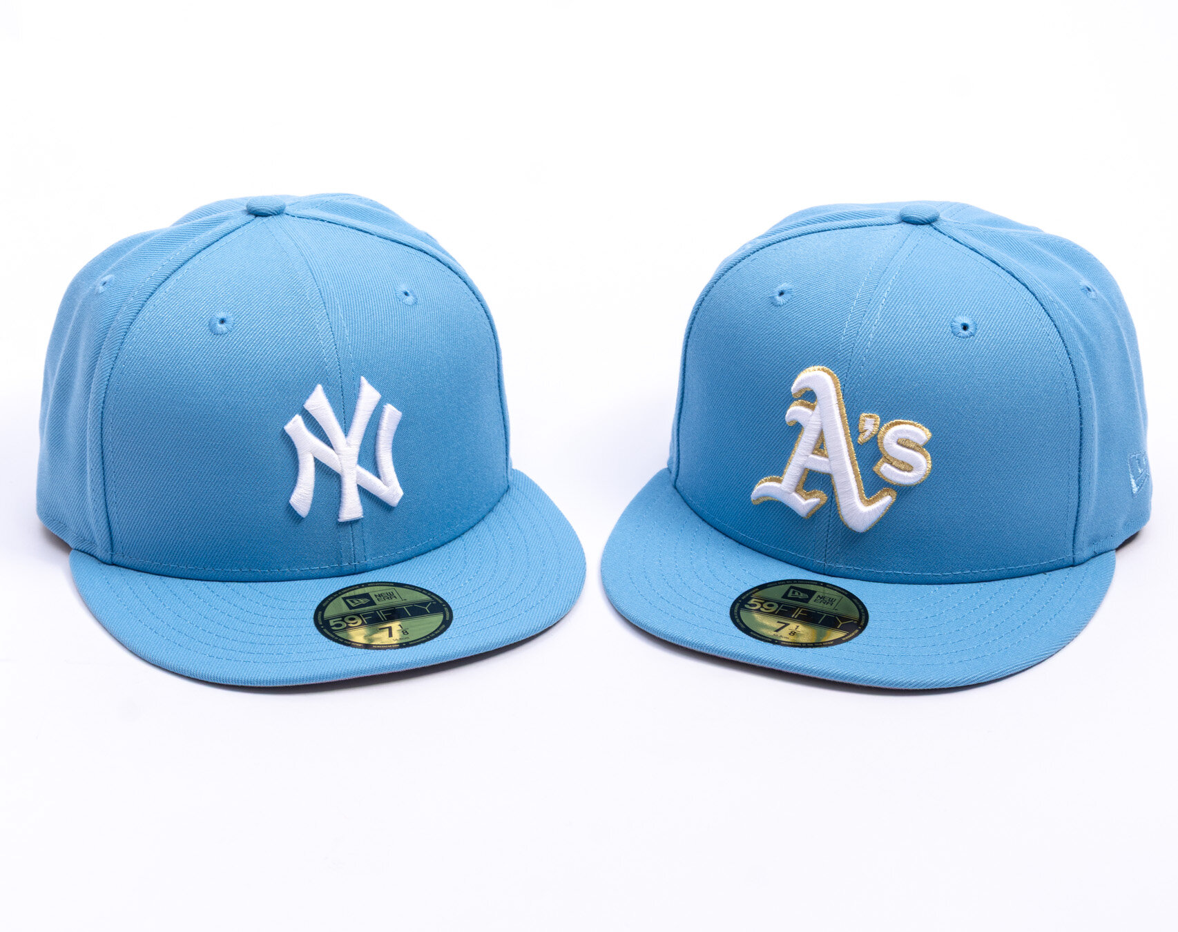 Světle Modrá Men's New Era Cap with the motif of the Oakland Athletics baseball team.