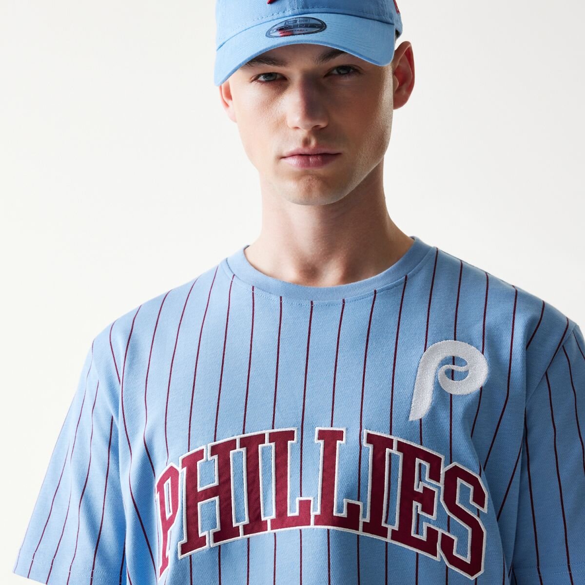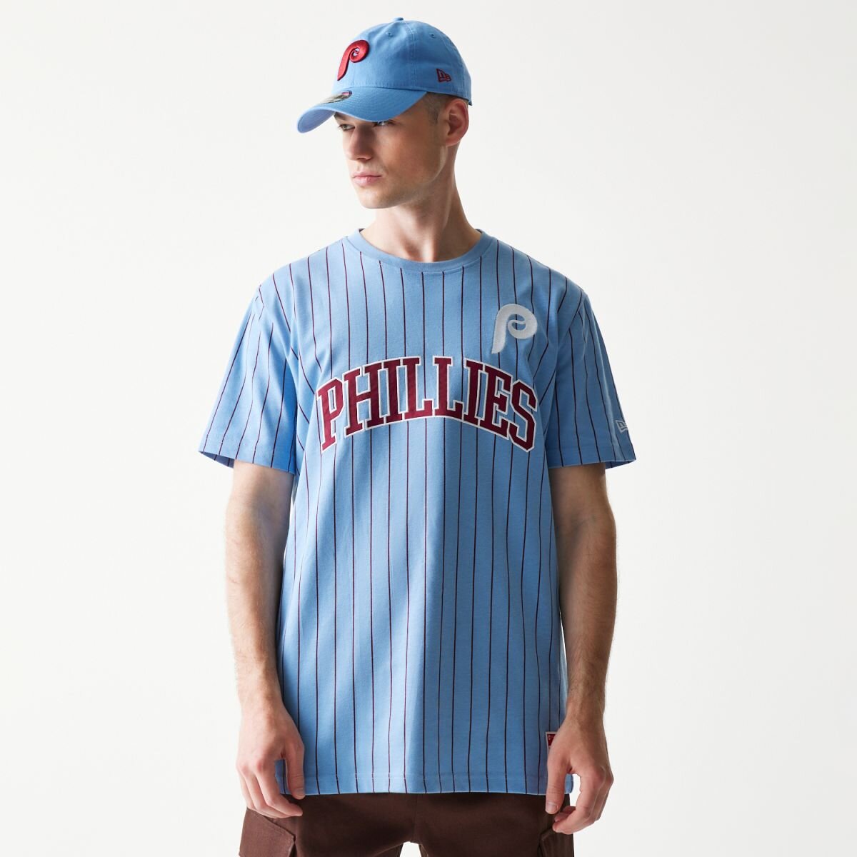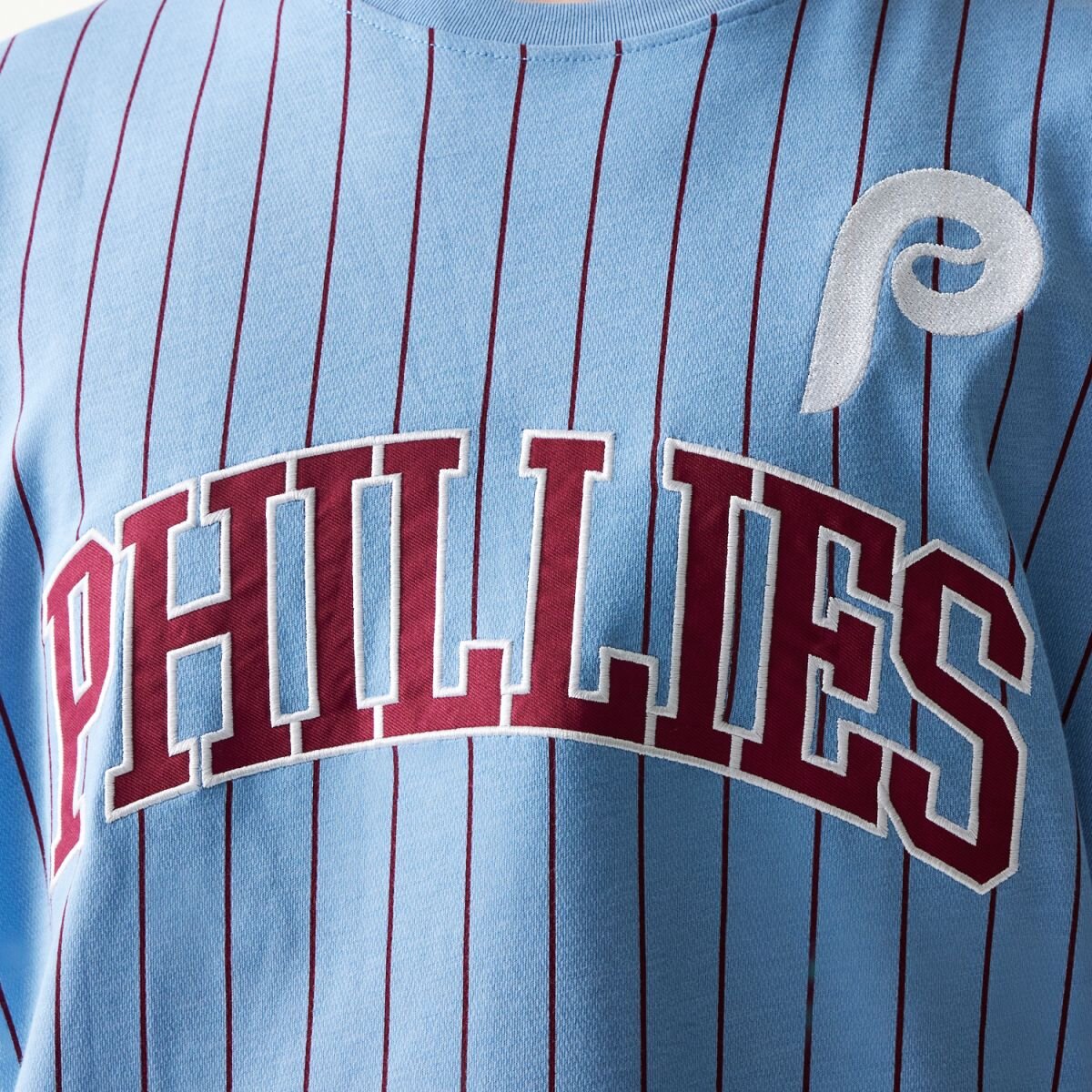 Světle Modrá Men's New Era triko with the motif of the Philadelphia Phillies baseball team.